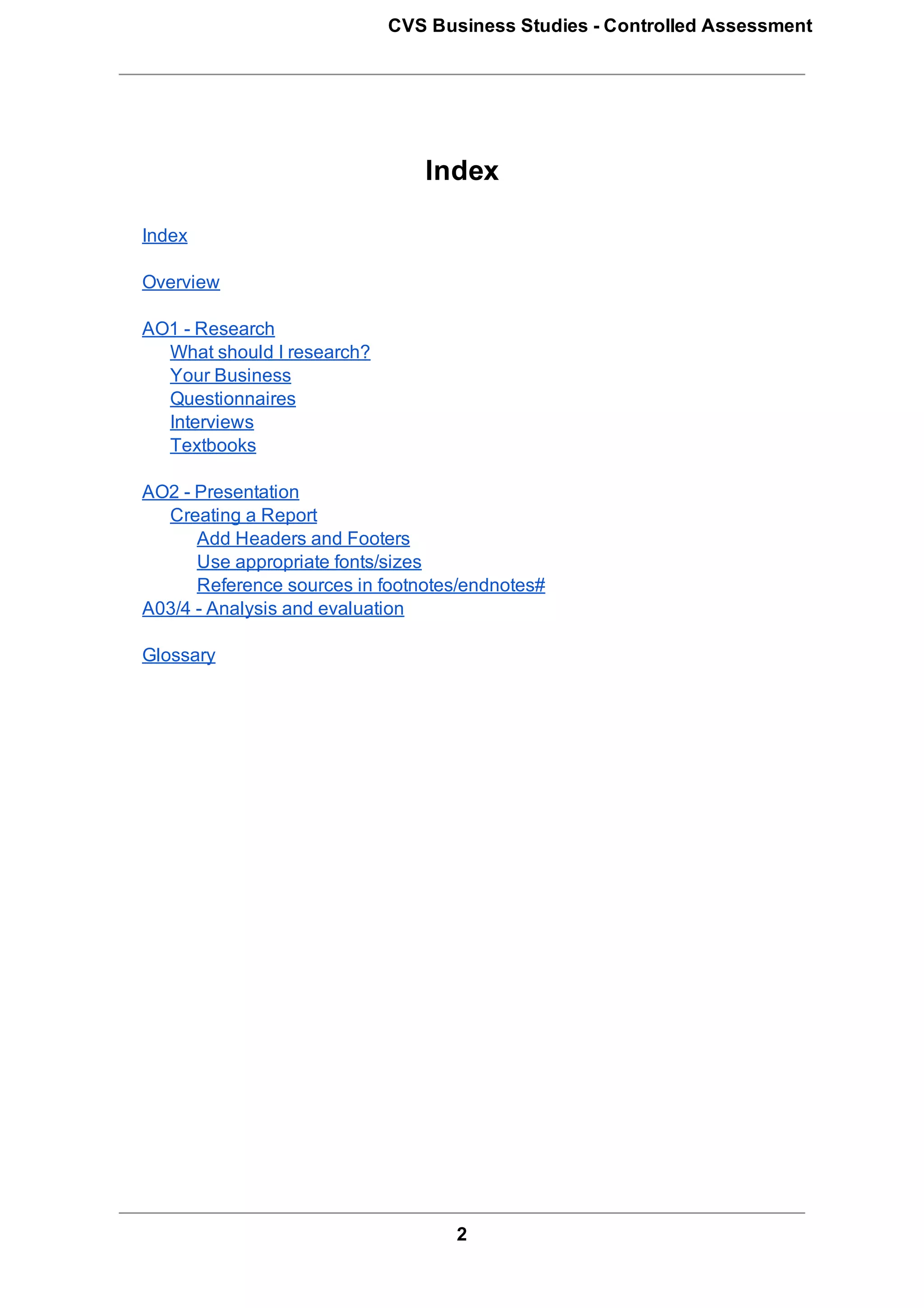 The document provides guidance for students completing a controlled assessment on business studies. It outlines the four assessment objectives: research, presentation, analysis, and evaluation. Students are instructed to research a local business using primary and secondary sources like interviews, questionnaires, and textbooks. They will have up to 6 hours for research and 3 hours to complete a written report under exam conditions. The report should analyze and evaluate the research findings to answer the chosen assessment question.