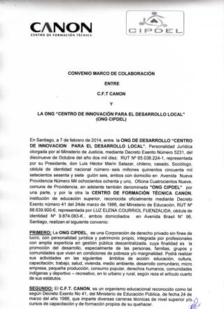 CONVENIO CFT CANON - ONG CIPDEL