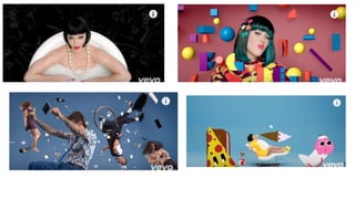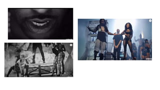 The document compares conventions across different music genres including rap, rock, pop, and indie. For rap, conventions that often occur include heavy jewelry, flashy displays of money, expensive cars, and casual baggy clothing. Rock conventions frequently involve live instrumentation and performances, as well as dark clothing and lighting. Pop music commonly uses colorful costumes, makeup, technology, and portrays a sexual or club-going lifestyle. Indie music tends to have a casual style and focus on live performances and low-budget settings that explore emotional themes.