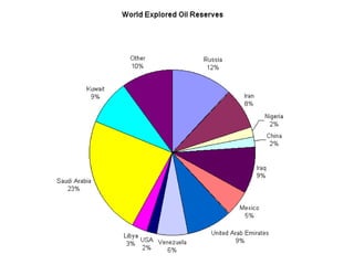This document discusses different types of energy resources including fossil fuels like oil, natural gas, and coal as well as renewable resources. It provides details on: