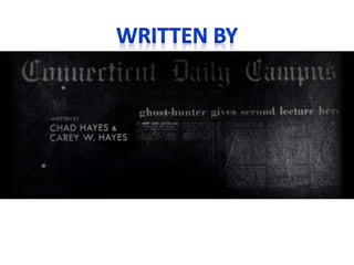 The title sequence of the film uses frightening images and creepy music to make the audience feel tense and scared. Newspaper articles and real family photos are included to make the film seem more realistic and scary. This creates a sense of reality for the audience and the feeling that the events could actually happen to them. The title sequence lasts 2 minutes and 3 seconds, showing newspaper clippings, family photos, graves, Ouija boards, and religious symbols. A variety of camera shots, including extreme long shots, mid shots, and close ups are used to compose this unsettling opening montage.