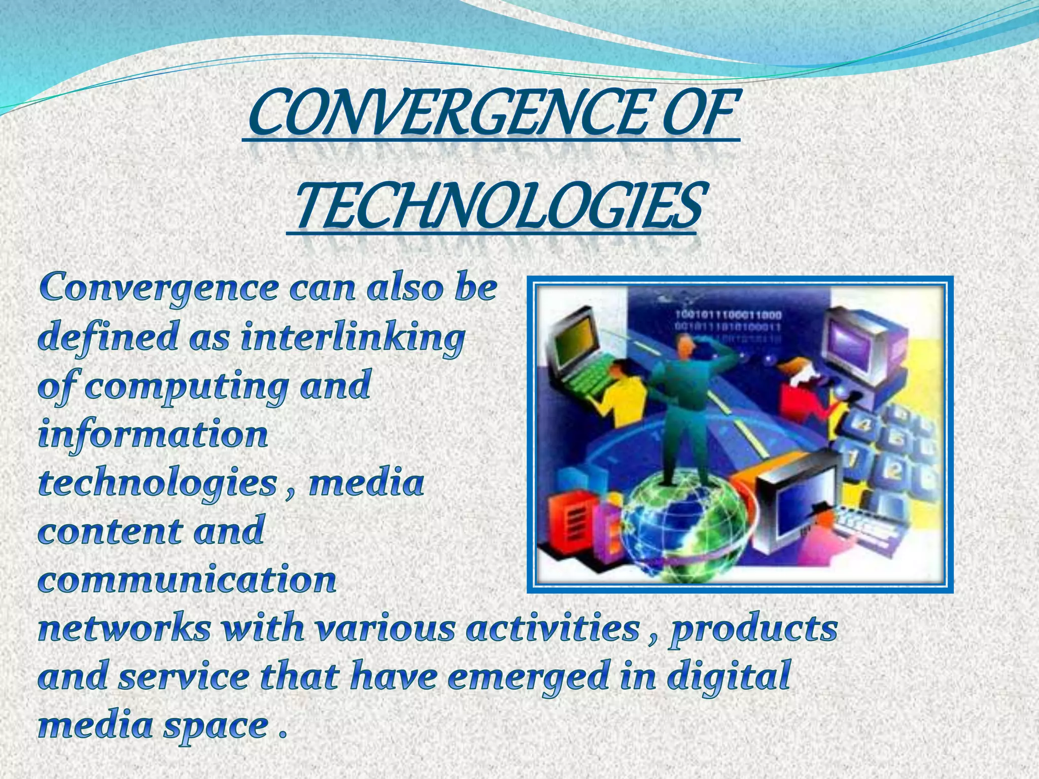 Digital convergence refers to the convergence of various types of data such as text, voice, video and graphics into digital form, driven by industries such as telecommunications, IT, internet and media. Messaging convergence groups services that integrate SMS with voice, examples being Voice SMS, Spin Vox, IVR and MMS, which is helpful for call centers, media companies and broadcasters. Some operators have also launched services that combine SMS with mobile instant messaging.