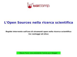 Il documento discute l'importanza dell'open source nella ricerca scientifica, evidenziando i vantaggi e le implicazioni etiche dell'uso di strumenti open. Viene tracciata la storia del movimento open source, dai suoi inizi con Richard Stallman negli anni '80 fino ai giorni nostri, e si menzionano le licenze GPL. Inoltre, si parla di open access e della necessità di software per la gestione delle fonti, come Zotero.