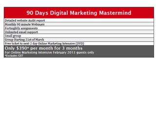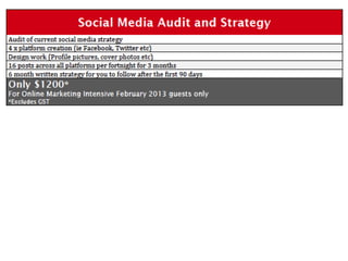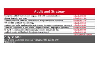 This document discusses conversion optimization and how to improve conversion rates on websites. It outlines 9 levers that can be optimized such as strengthening the value proposition, building credibility, creating a planned visitor journey with relevant content, and using clear calls to action. These optimization techniques are meant to increase visitor engagement, leads, sales and reduce costs. The key is to test different elements like offers, headlines and page design to measure what improves conversions.