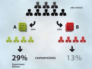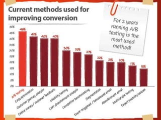 The document discusses conversion optimization strategies aimed at improving website performance and increasing lead generation. It emphasizes the importance of targeted campaigns, effective landing pages, and understanding visitor behavior through analytics and testing. Additionally, it highlights the significance of design elements, like call-to-action buttons, in influencing conversion rates.