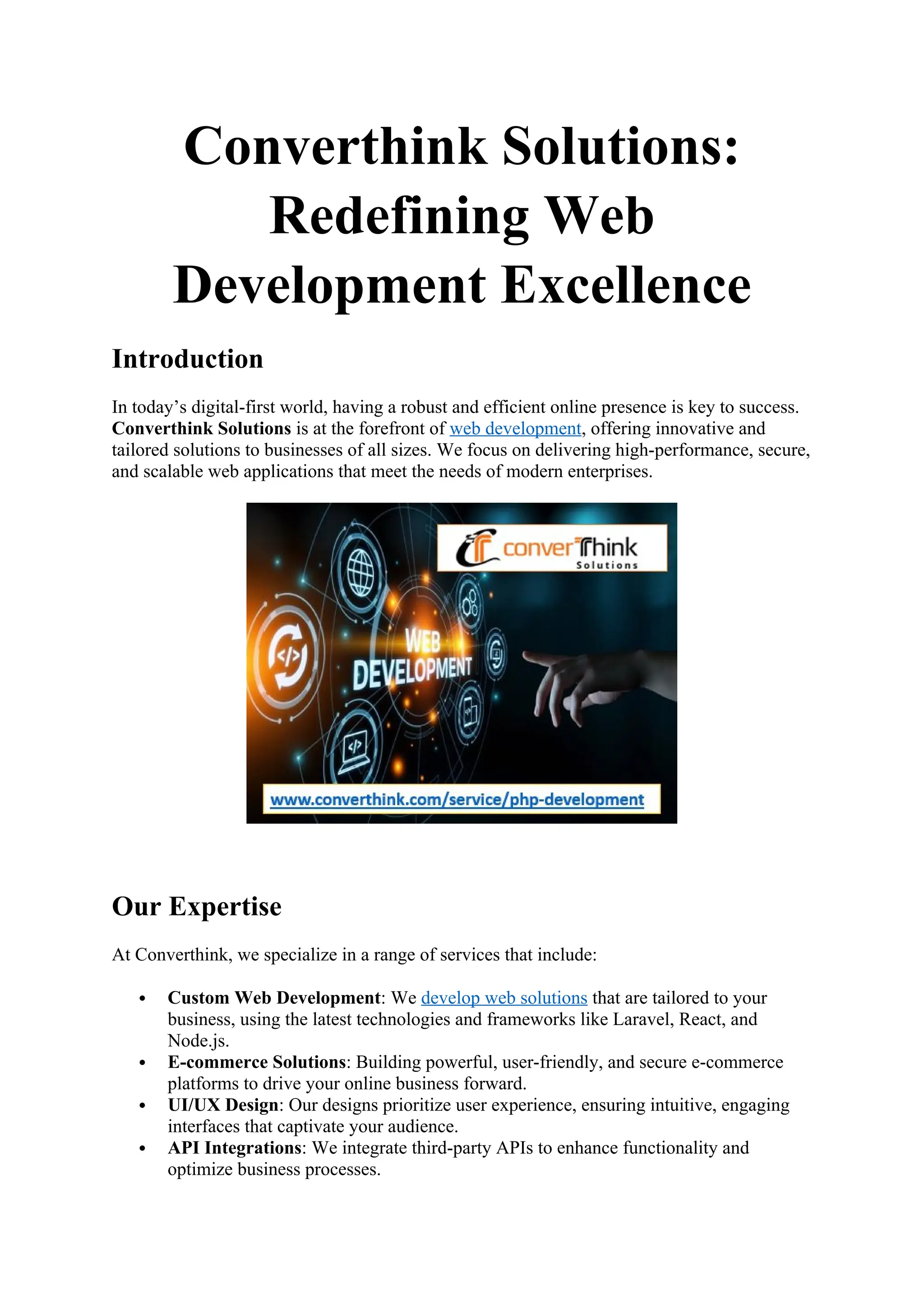 Converthink Solutions is a best custom PHP Ecommerce Web development company in India that offers custom web application development in all PHP frameworks and open source platforms. Contact us for Web Portals, ecommerce website, web applications, shopping cart development services.