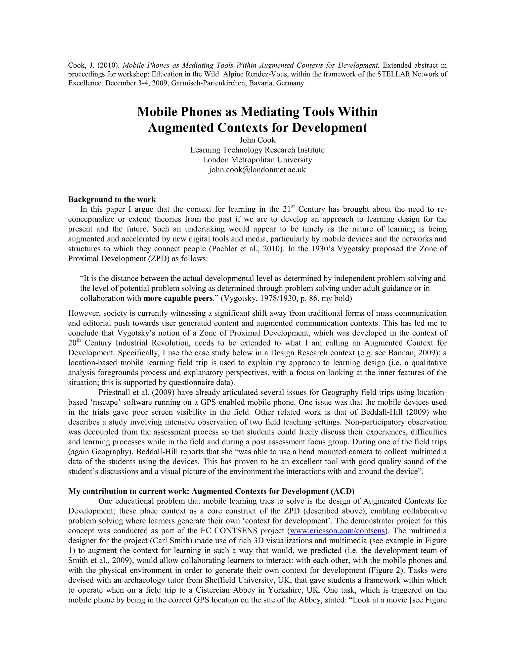 The document discusses the need to extend traditional learning theories, particularly Vygotsky's zone of proximal development, to include augmented contexts facilitated by mobile technology in education. It presents a case study involving location-based mobile learning during a field trip, illustrating how students engaged in collaborative problem-solving and co-constructed learning experiences through multimedia interactions. The findings highlight both positive student feedback on mobile learning's effectiveness and challenges, such as distractions from the physical environment.