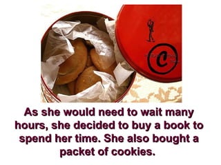 A young woman was waiting for her flight at the airport and decided to read a book and eat cookies to pass the time. As she took cookies from her bag, the man next to her also took cookies, thinking they were shared. This angered the woman but she did not confront the man. When only one cookie was left, the man split it and offered half to the woman. Feeling it was too much, the woman stormed off. Later, on the plane, she discovered her unopened bag of cookies, realizing the man had been sharing his own cookies and she had misunderstood.