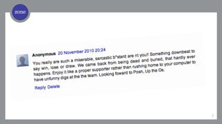 Zone was hired by BT to help establish it as a credible player in the football market through digital content marketing. Zone's approach was to 1) hire a full-time editor with football expertise, 2) identify and leverage key influencers, and 3) optimize content distribution across digital channels. Under Zone's management, Life's a Pitch grew its weekly audience by over 16,000% and YouTube views to over 1.7 million. This success helped BT gain credibility and a loyal audience in the competitive football market through ongoing, valuable content.