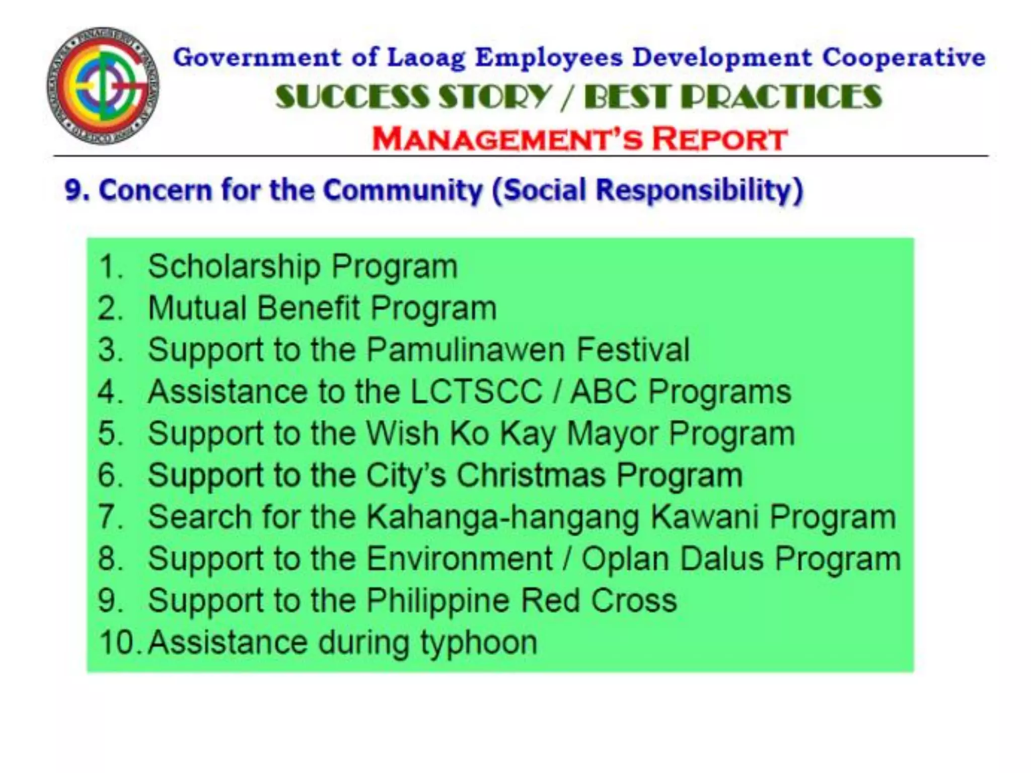 This document provides an overview of cooperatives including their history, principles, governance, and impact. It discusses how cooperatives originated from groups working together throughout history for mutual benefit. The modern cooperative movement began in the 19th century in Europe and North America. Cooperatives were formed during economic hard times to help people. They contribute to job creation, social integration, and poverty reduction. The document also outlines the different types of cooperatives according to Philippine law and provides statistical data on cooperatives in certain provinces and their total assets.