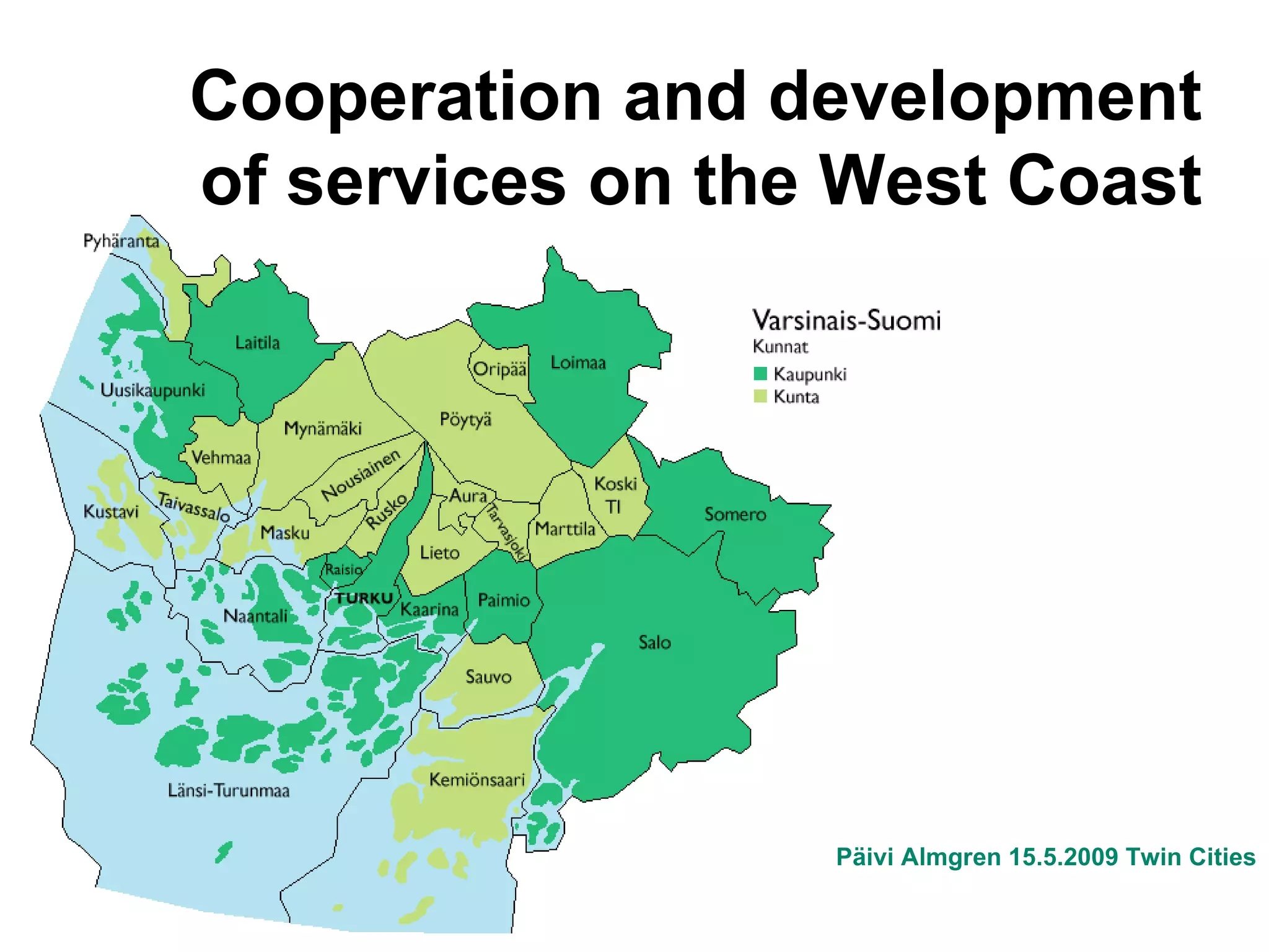 The document discusses the cooperation and development of library services in Southwest Finland, highlighting the establishment of regional cooperation networks and the orchestration of joint resource usage among libraries. It outlines the goals of enhancing customer service, promoting cultural equality, and improving logistical efficiency while emphasizing expert collaboration and the participation of library users in developing new services. The Blanka project aims to create a bilingual library system ensuring access to quality services for all citizens and promoting continuous professional development among library staff.