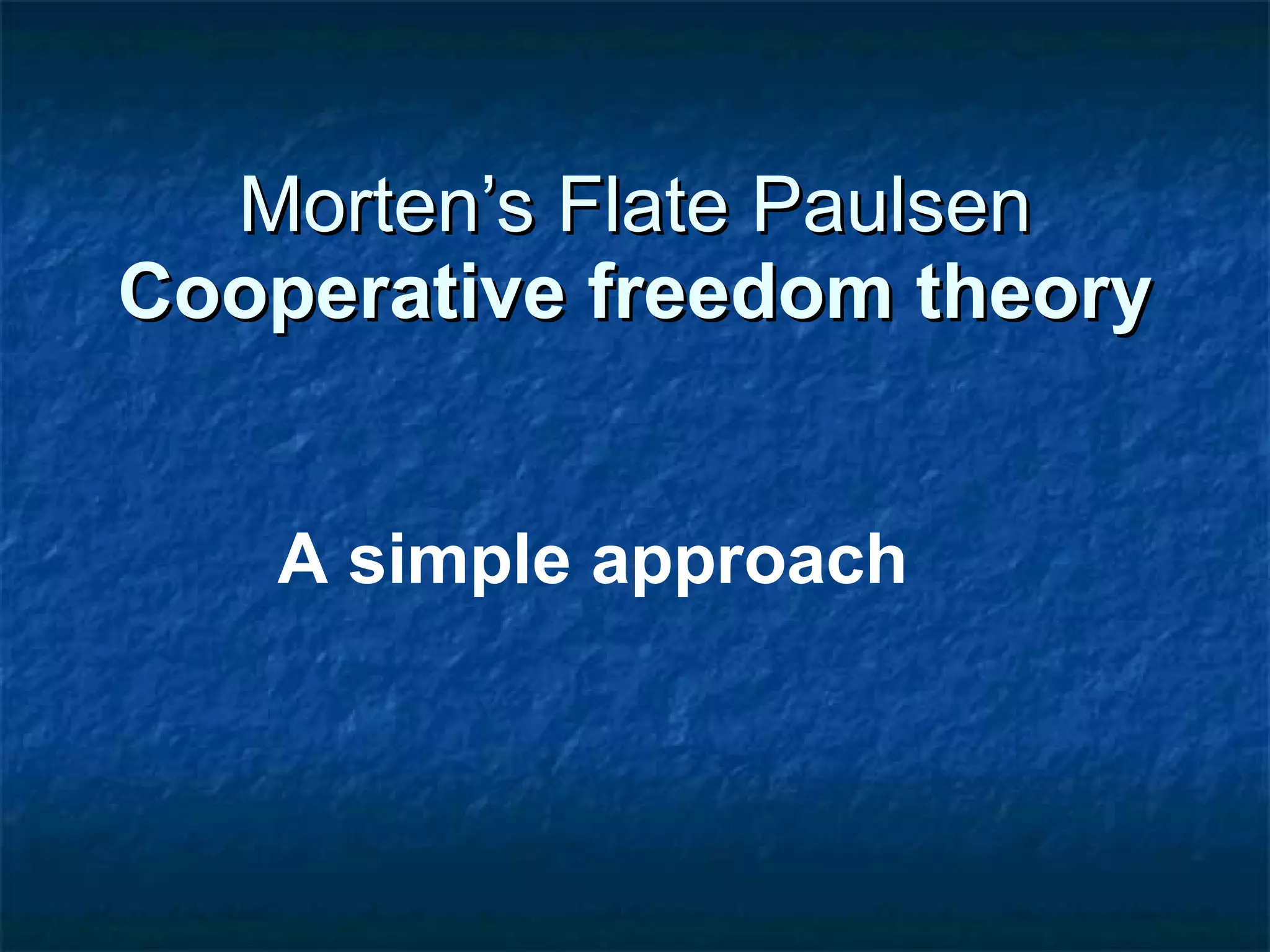 The document describes Morten Flate Paulsen's cooperative freedom theory of distance education. The theory claims that adult students often seek both individual flexibility and freedom in their education, as well as group collaboration and social unity. It proposes that students need cooperation as well as freedom. The theory is influenced by Knowles's theory of andragogy and perceives students as motivated and self-directing. It applies to different student motivational orientations and suggests six dimensions of freedom that provide flexibility in distance education: freedom of time, space, content, medium, pace, and access. The conclusion states that future students will continue to seek both individual flexibility and social collaboration, which online education can help balance.