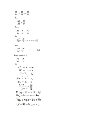- Dividing a line segment into parts externally or internally based on a given ratio of distances.