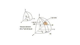 The document discusses various coordinate systems used in representing points in space, specifically orthogonal systems like Cartesian, cylindrical, and spherical coordinates. It details the relationships and transformations between these systems, including computation of position vectors, unit vectors, and differential elements in each system. Additionally, it provides mathematical relationships for converting between different coordinate systems and their respective transformation matrices.