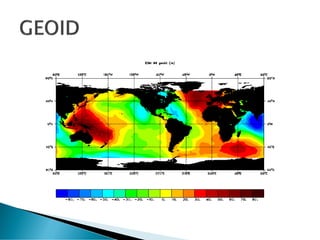 The document discusses coordinate systems and geo-referencing. It describes geographic coordinate systems (GCS) which use latitude and longitude based on an ellipsoid and datum. It also describes projected coordinate systems (PCS) which use x,y coordinates on a flat plane for mapping purposes. The document outlines how different map projections transform the ellipsoid to the flat plane, introducing various types of distortion. It emphasizes the importance of coordinate systems and transformations for accurately locating points on maps and overlaying spatial data.