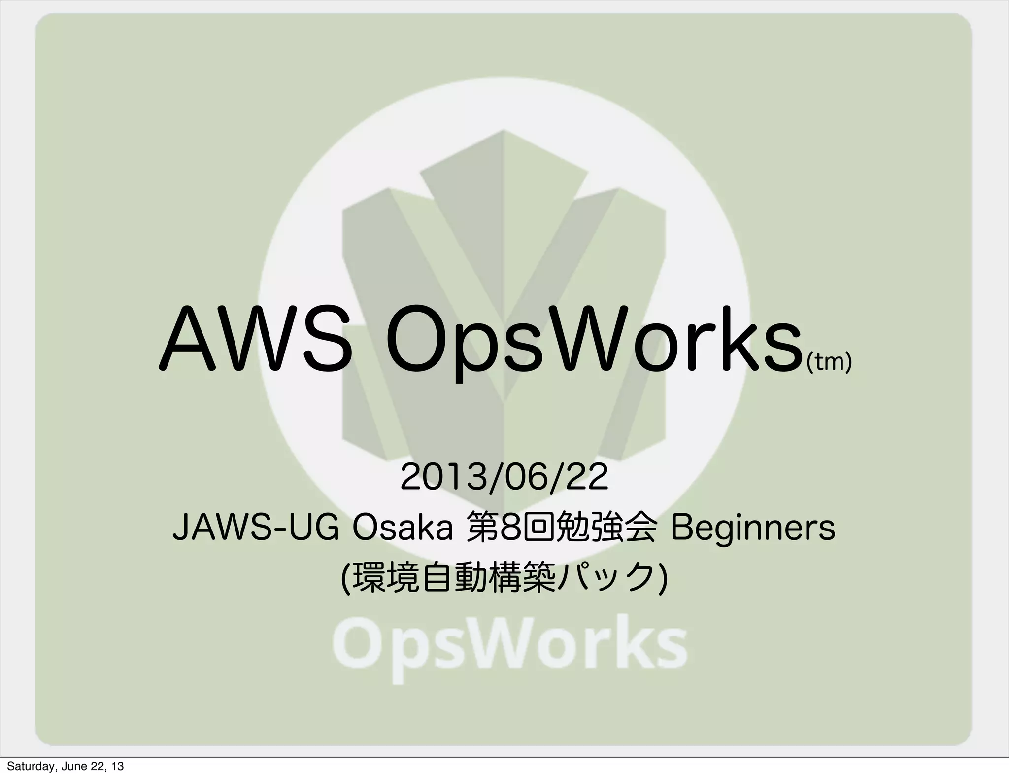 OpsWorksの オートスケール Saturday, June 22,