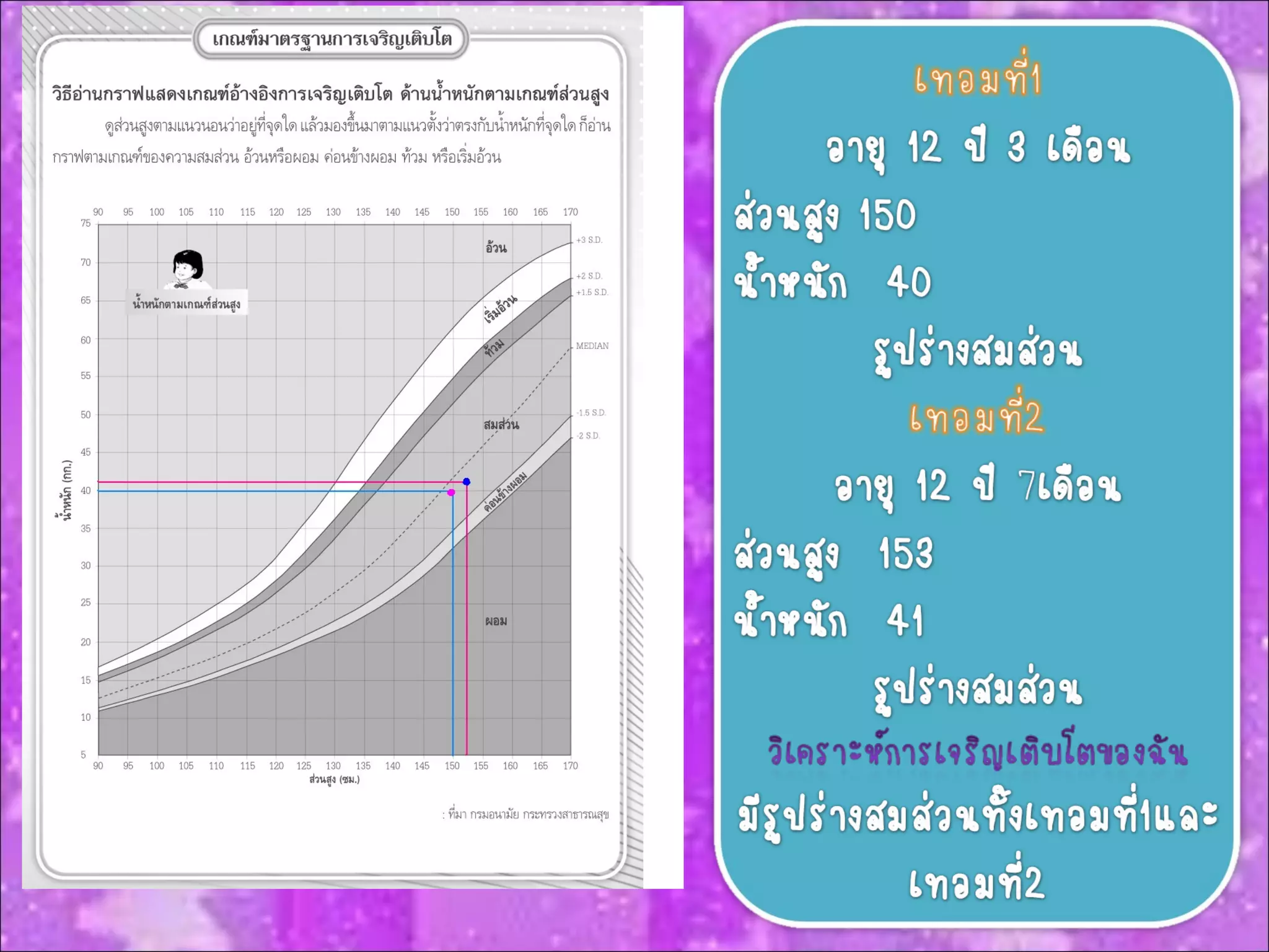อายุ 12 ปี น้ำหนัก 41 กิโลกรัมส่วนสูง 153 เซนติเมตร BMI 17.5 ( ผอม ) - 16.