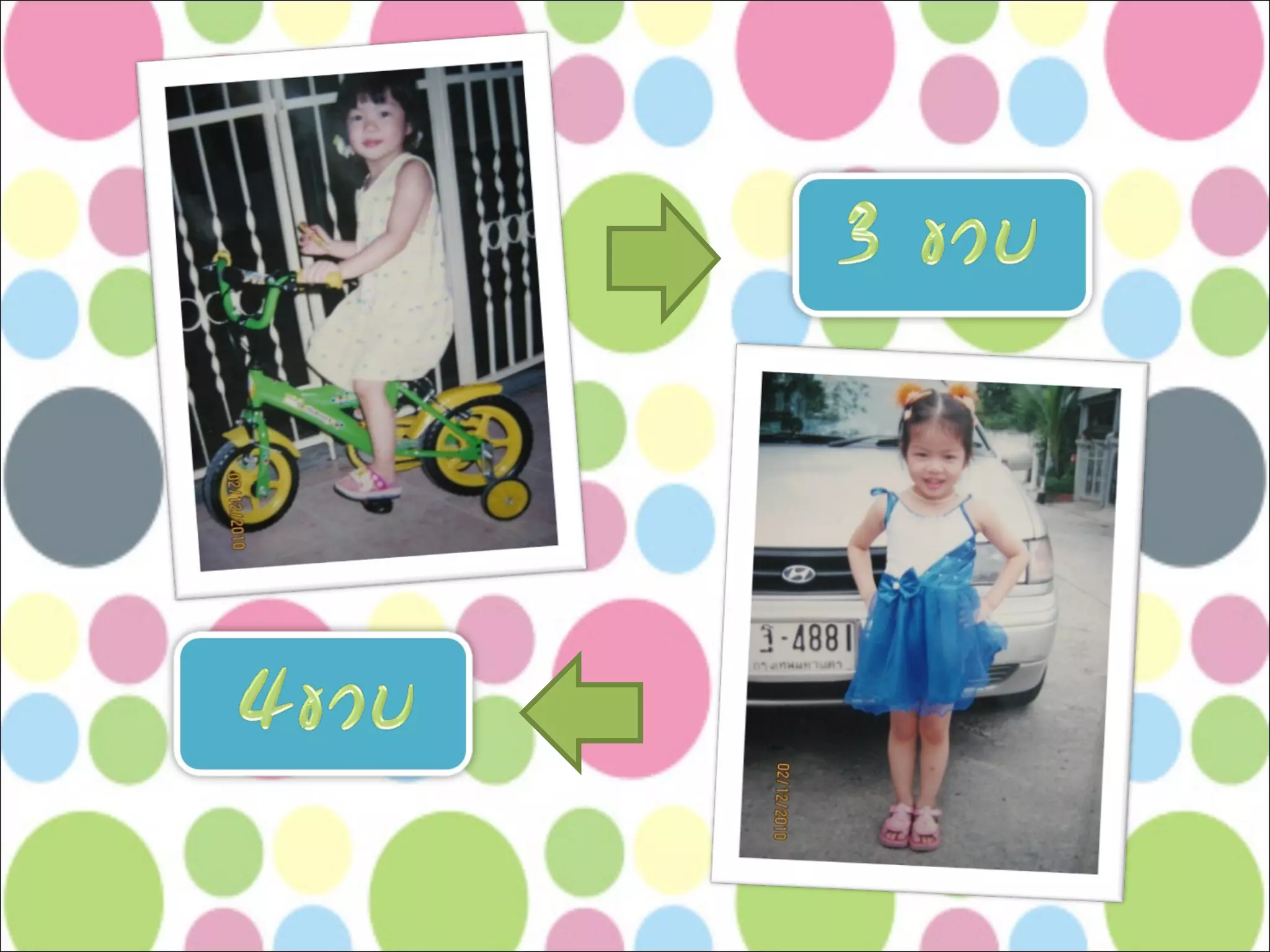ตอนเด็กฉันมีรูปร่างท้วม แต่โตขึ้นฉันมีรูปร่างผอม เพราะฉันรับประทานอาหารน้อยลง ฉันมีน้ำหนักและส่วนสูงเพิ่มขึ้น มีส่วนสูงเพิ่มขึ้นอย่างรวดเร็วตอนอายุ 11 ปี มีหน้าตาเปลี่ยนไปเล็กน้อย ในวัยเด็กมีพัฒนาการในแต่ละด้านเพิ่มมากขึ้น เช่น การพูด การอ่าน ตั้งแต่เด็กฉันมีส่วนสูงและน้ำหนักตามเกณฑ์มาตรฐาน - 14.