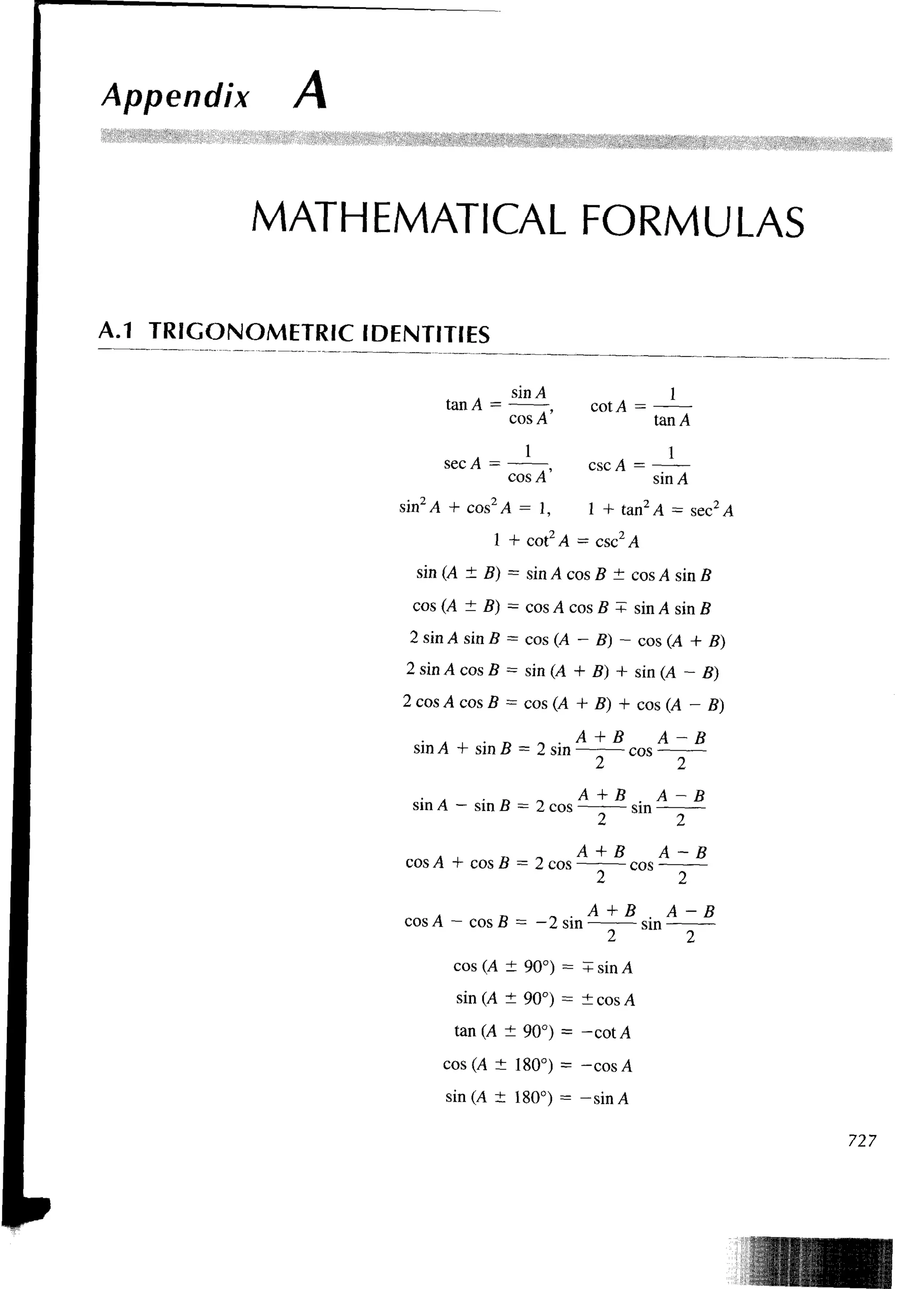1) Trigonometric identities involving sin, cos, tan, cot, sec, csc functions.