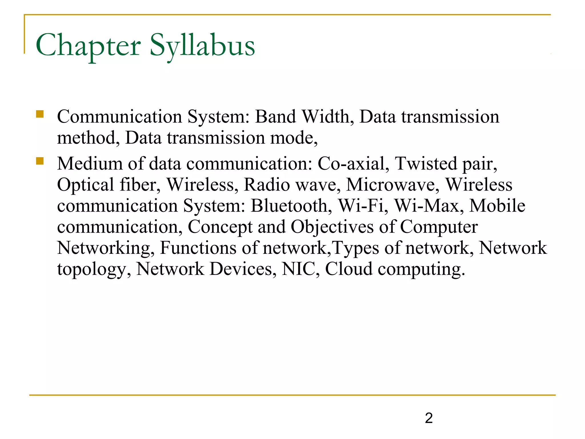 This document provides an overview of communication systems and networking. It discusses various topics such as communication system components, different transmission media including wired (twisted pair, coaxial cable, fiber optic) and wireless (radio, microwave, infrared), wireless communication systems, communication protocols (OSI model and TCP/IP), and networking concepts. It also describes concepts such as bandwidth, modulation, error detection and correction. Diagrams are included to illustrate communication models, transmission media and satellite communication processes.