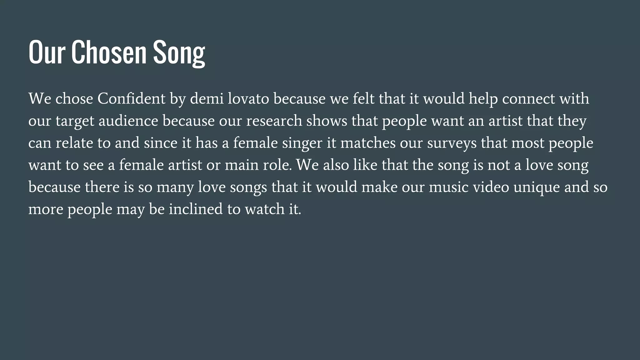 The document discusses the mise-en-scene elements for a music video including location, clothing, makeup, and hair. Three main locations are chosen - a basketball court to show the lead as sporty, an alleyway to portray her as rebellious, and woods to depict her as carefree. Typical teenage clothing like jeans and t-shirts are selected to make the lead relatable. Makeup and hair are chosen to match the emotion of each scene. A rival basketball player is included to add competition to the music video's narrative of the lead winning a game.