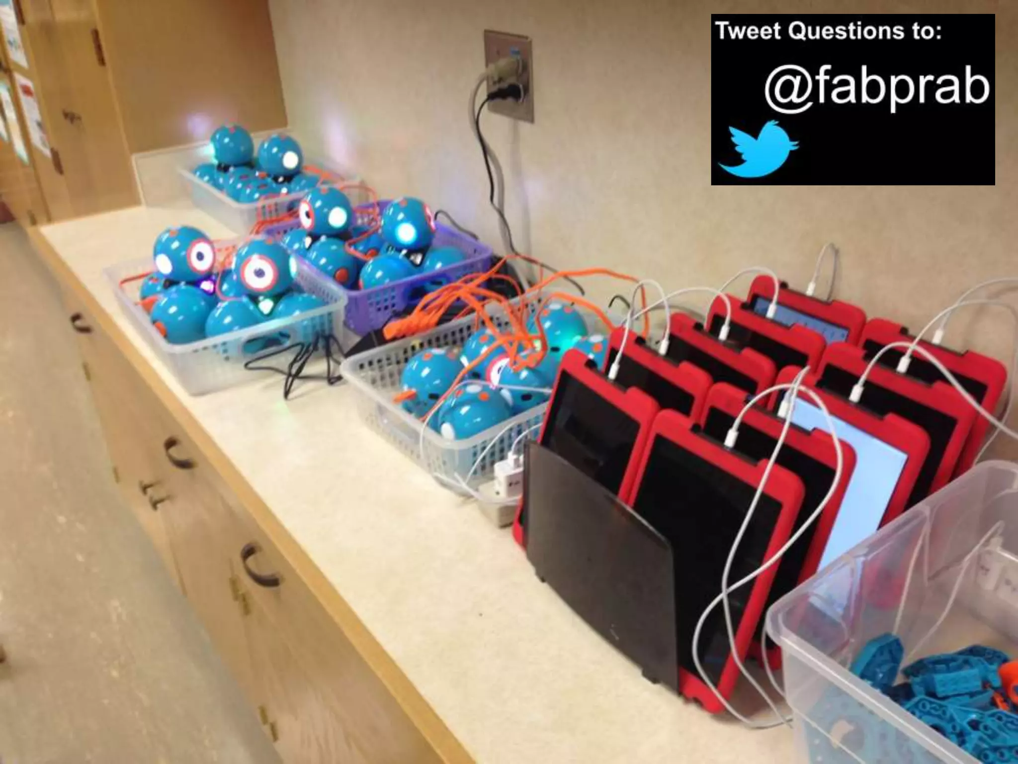 This document provides information about educational robots Dash and Dot made by Anthropic, including what they can do, recommended apps to code and play with them, supported devices, and resources for teachers including pricing discounts for educational orders of 5 or more robots. Dash can drive, detect objects, light up and make sounds while Dot can light up, make sounds and control Dash. Apps include Go for remote control, Path for algorithms, Blockly for block coding, Xylo for creating music, and resources include a teacher website, Pinterest board, and iBook.