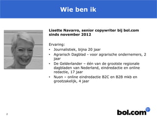 Lisette Navarro, senior copywriter bij bol.com sinds november 2012