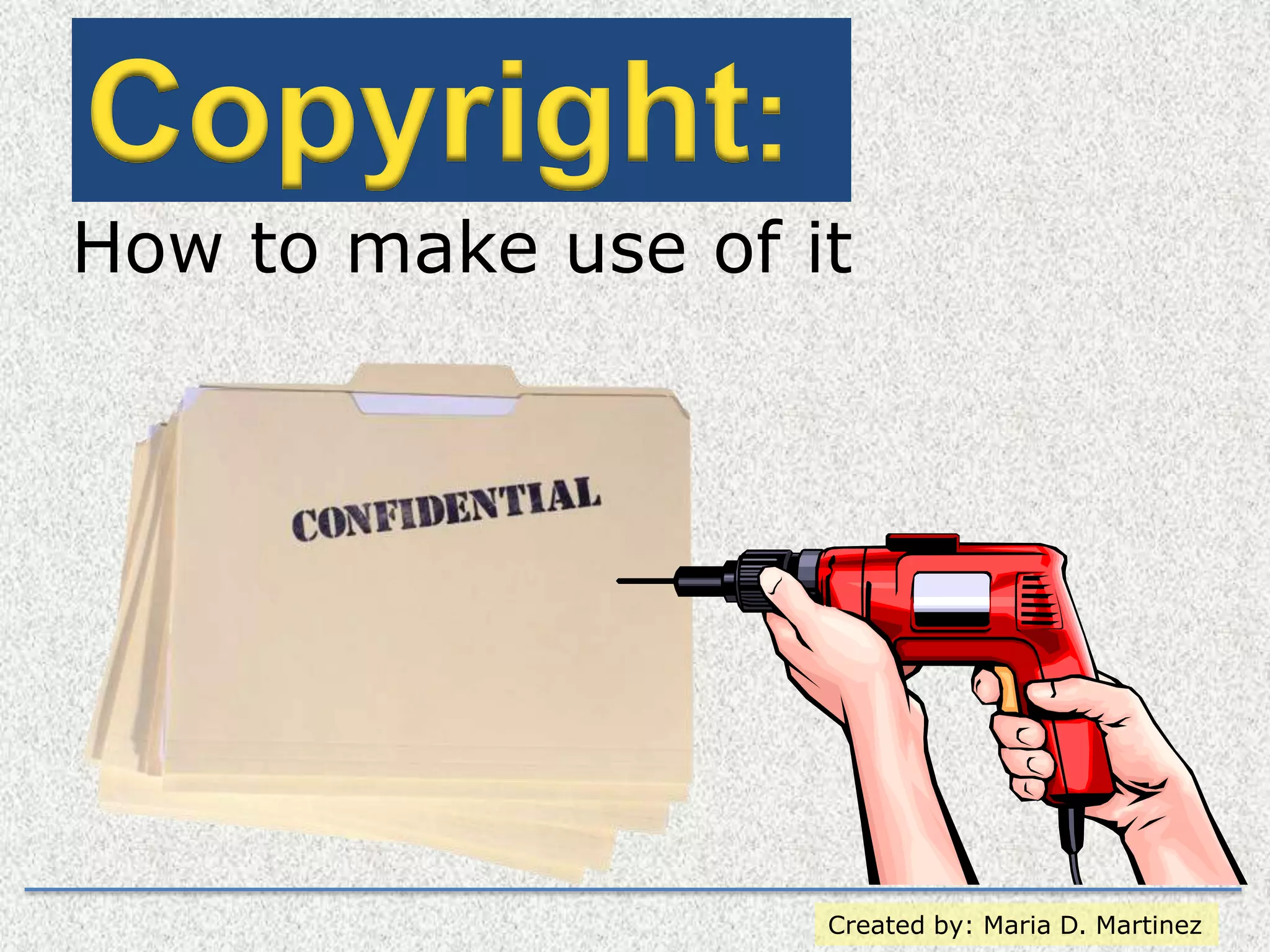 Copyright is the exclusive legal right to reproduce, publish, sell or distribute a work. The first copyright statute was created in 1710 in Great Britain, and the first US copyright law was enacted in 1790. There are different types of copyright licenses like implied and express licenses. Fair use allows limited use of copyrighted works without permission for purposes like education or commentary if it meets four factors: the use's purpose, the work's nature, how much is used, and the effect on the work's market. Educators can use portions of copyrighted works for classroom teaching under certain conditions like the Teach Act. Penalties for copyright infringement can be up to $150,000 per act but ignorance is not a defense,