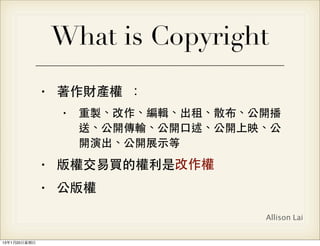 本文探讨了版权的概念及相关交易,包括著作权、改作权及各类代理和出版商的角色。文中提到了版权交易涉及的主要参与者如作家、国际和台湾的代理及出版社,并说明了预付金和版税的计算方式。此外,文中还指出了获取版权信息的途径和主要国际书展的时间。
