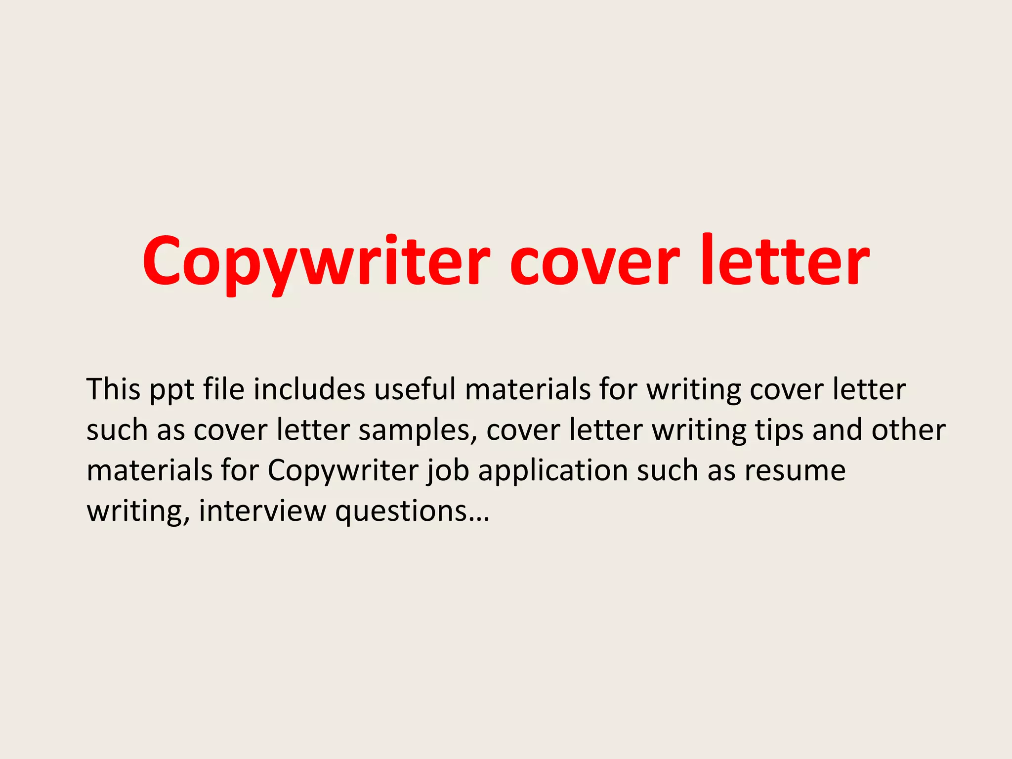 This document provides materials for writing a cover letter for a copywriter position, including two sample cover letters, tips for writing an effective cover letter, resume samples, and information on interview questions, thank you letters, and how to win a job interview. The samples cover letters emphasize the writer's relevant experience in copywriting, their skills in writing for various mediums, and their desire for the position. Additional resources are listed on cover letter writing, resumes, interview questions and answers, and job interview best practices.