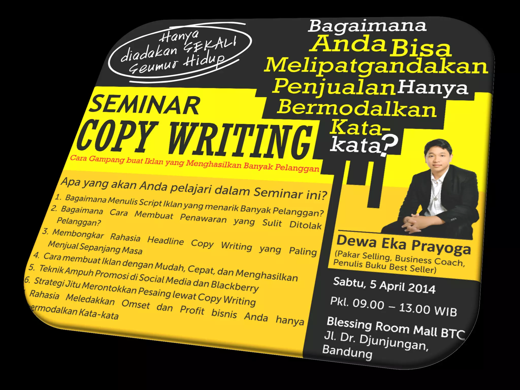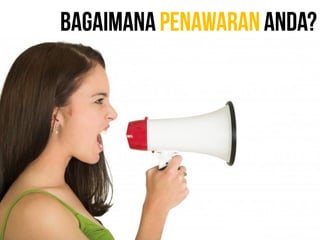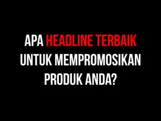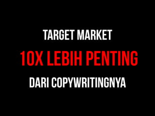 Dokumen ini membahas berbagai strategi copywriting untuk pemasaran, termasuk jenis penawaran, media promosi, elemen copywriting yang efektif, serta penggunaan testimoni dan garansi. Selain itu, ada sejumlah contoh kalimat ajakan bertindak dan tips untuk meningkatkan penjualan. Penekanan pada praktik dan penerapan teknik-teknik ini adalah kunci untuk mencapai hasil yang diinginkan dalam pemasaran.