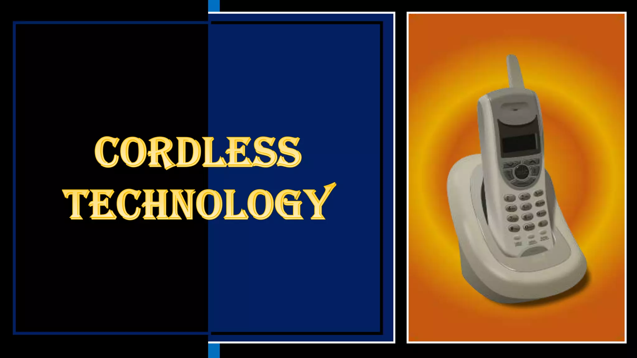 Cordless phones allow wireless communication between a portable handset and a base station connected to a telephone line. There are different generations of cordless phone technology, from early analog systems to newer digital standards like DECT and PHS. DECT is widely used in Europe and other parts of the world for home and office cordless phone systems, offering better voice quality and security than analog predecessors. Digital systems also provide features like extended battery life and range compared to early cordless phones.