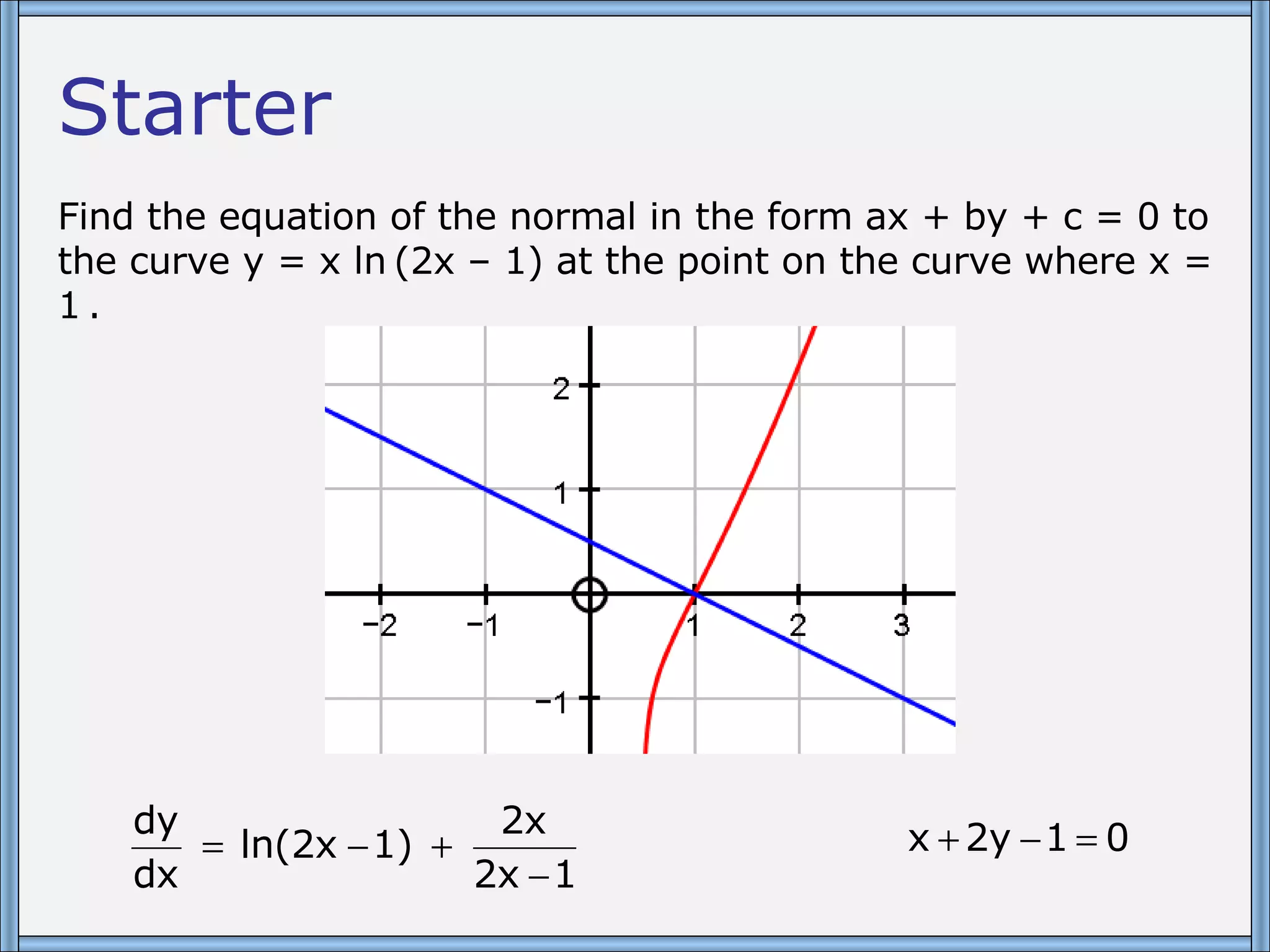 The document discusses finding the equation of the normal line to a curve at a given point using differentiation. It introduces the Quotient Rule for differentiating quotients of functions and notes that the Product Rule is often easier to use. It also attributes the discovery of the Quotient Rule to Gottfried Leibniz in 1677 and provides an example of using it to find stationary points on a curve.