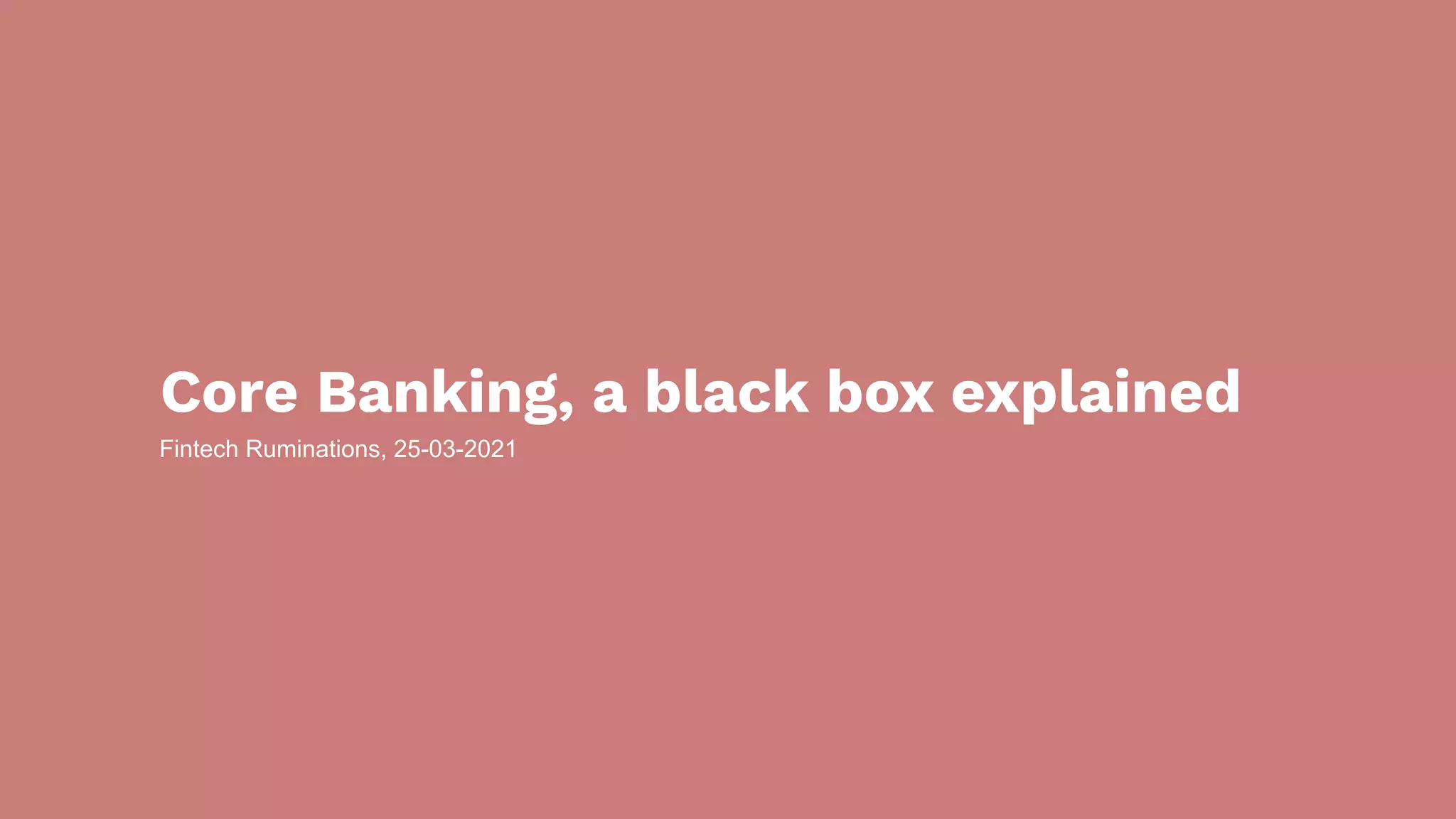 A core banking system is a centralized system that tracks financial transactions in real-time across multiple channels. Historically, transactions were recorded locally at bank branches but now occur centrally. The main elements of a core system include channels to move money, fraud detection, product creation tools, and a centralized ledger. Banks must decide whether to build, buy, or fully outsource their core system, balancing flexibility, costs and resources.