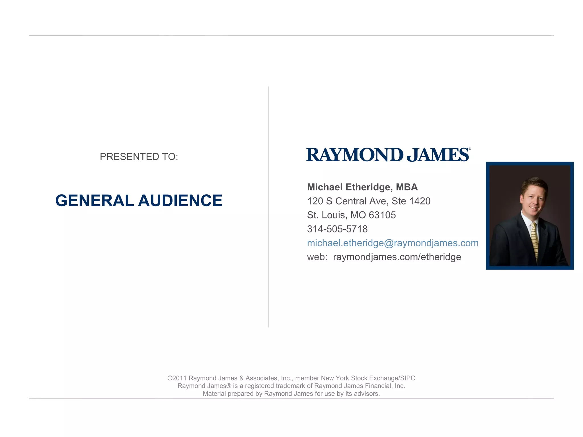 This document provides an overview of a financial advisor's presentation to a potential client. The presentation introduces the advisor's team and process, discusses the benefits of working with a financial advisor, and highlights the capabilities and resources provided through the advisor's partnership with Raymond James. Key points include explaining how emotional biases can lead individual investors to make poor decisions, demonstrating how individual investors have historically underperformed benchmarks, and outlining the advisor's client-focused approach and access to specialists.