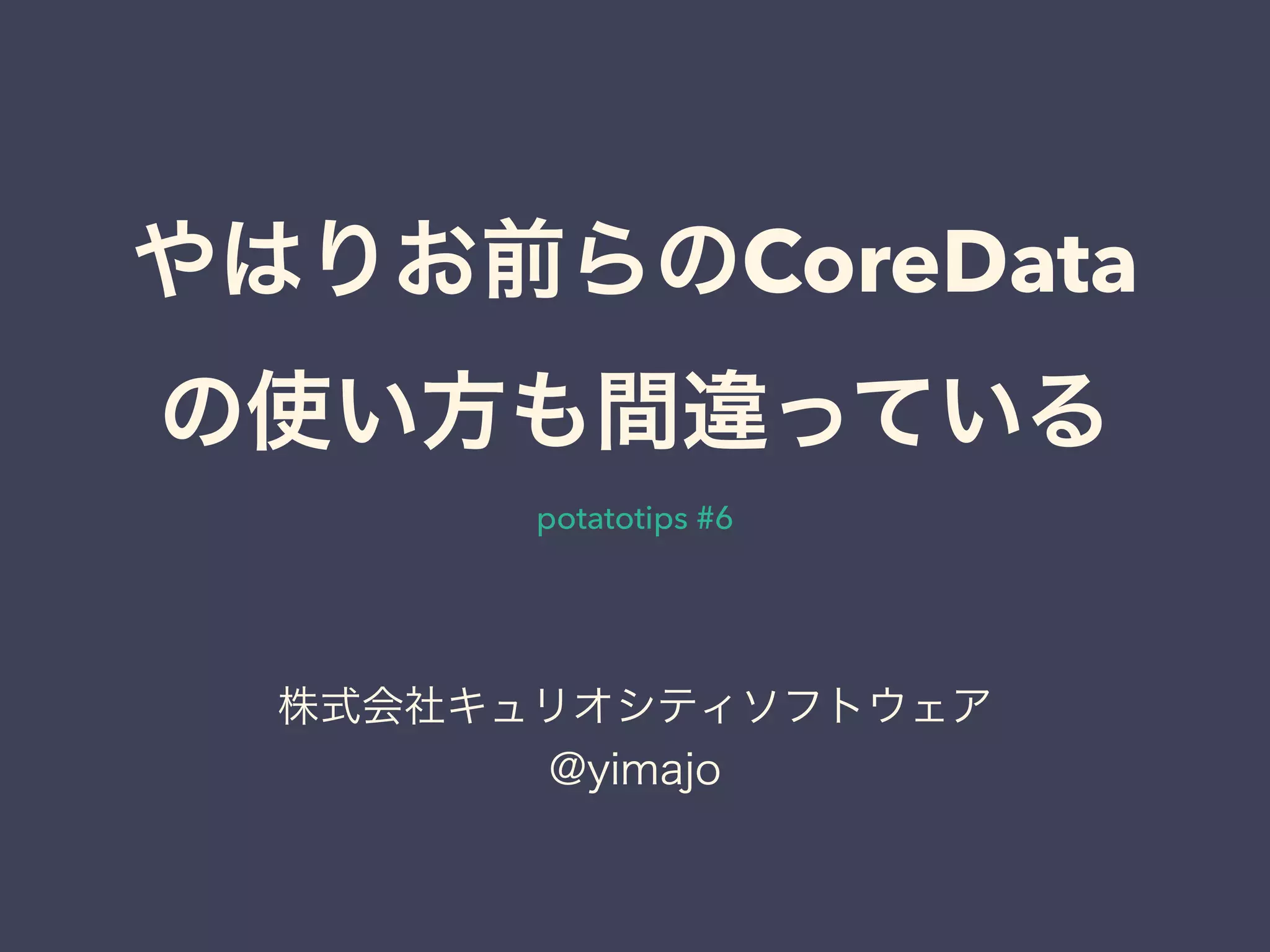やはりお前らのCoreData の使い方も間違っている potatotips #6 株式会社キュリオシティソフトウェア @yimajo