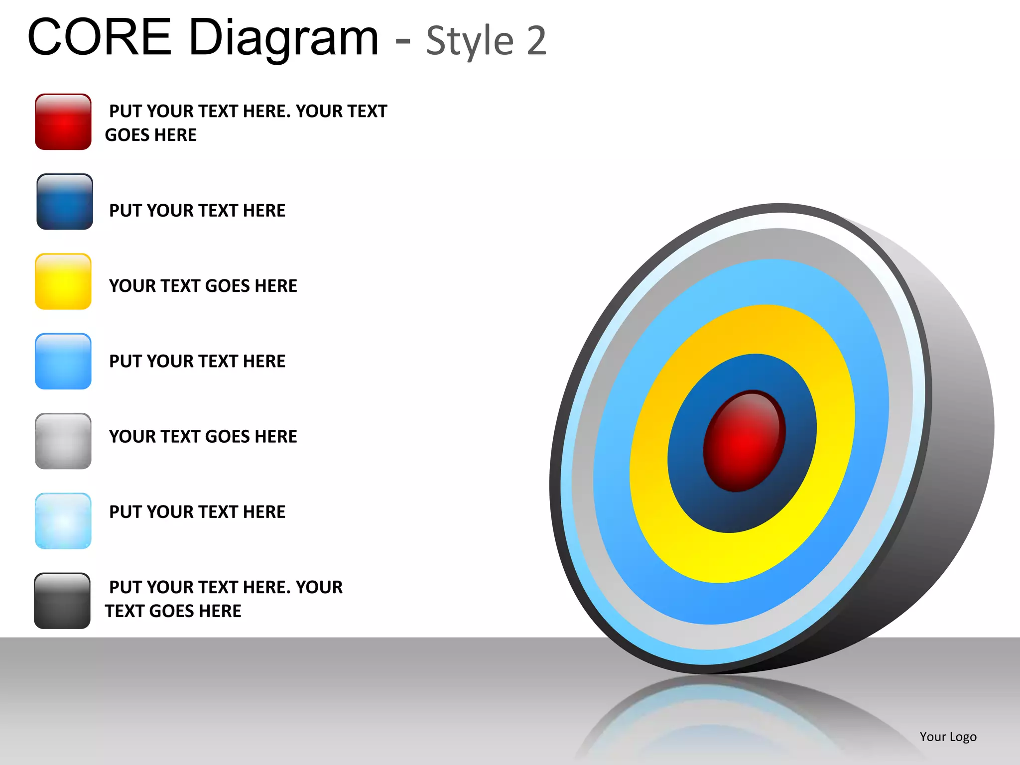 The document provides instructions and examples for customizing a CORE diagram template. It demonstrates how to add and format text in the template boxes, download and use the template, and edit icon colors and grouping. The template is designed to be fully customizable in PowerPoint for presentations.
