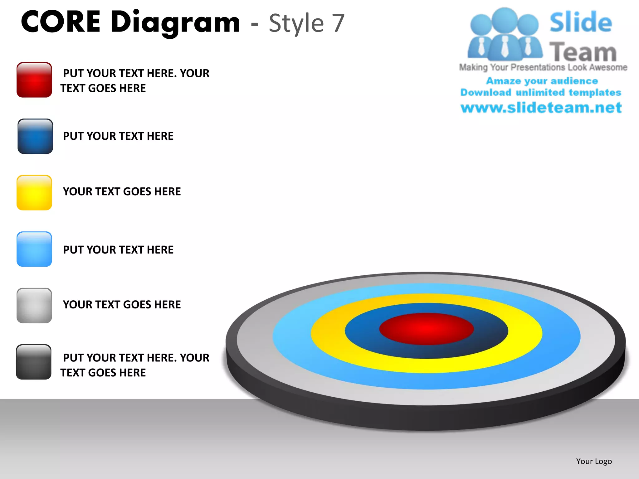 The document provides instructions for editing CORE diagrams in different styles using Microsoft PowerPoint. It includes steps for ungrouping objects to edit individual elements and changing the color of objects by selecting the "Fill" option in the format shape dialog box. The diagrams can be customized by adding or modifying text elements and downloading the finished product.