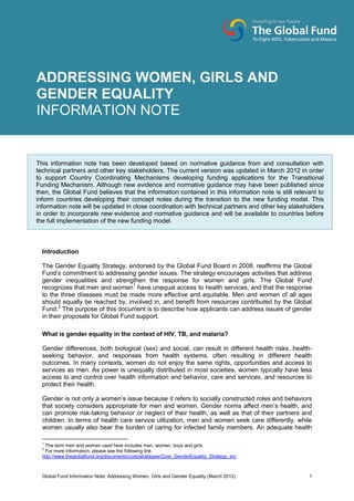 ![Global Fund Information Note: Addressing Women, Girls and Gender Equality (March 2012) 2