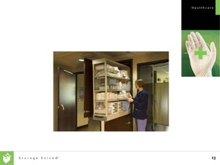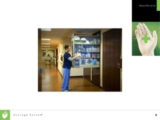 The document outlines the Corestor Patient Server, emphasizing its ability to provide 80% of necessary supplies within 10 feet of patient care areas. It includes a comprehensive market analysis, a visual tour of product concepts, and various informational inserts such as brochures and case studies. Additionally, it discusses planning tools and design resources for product implementation and marketing.