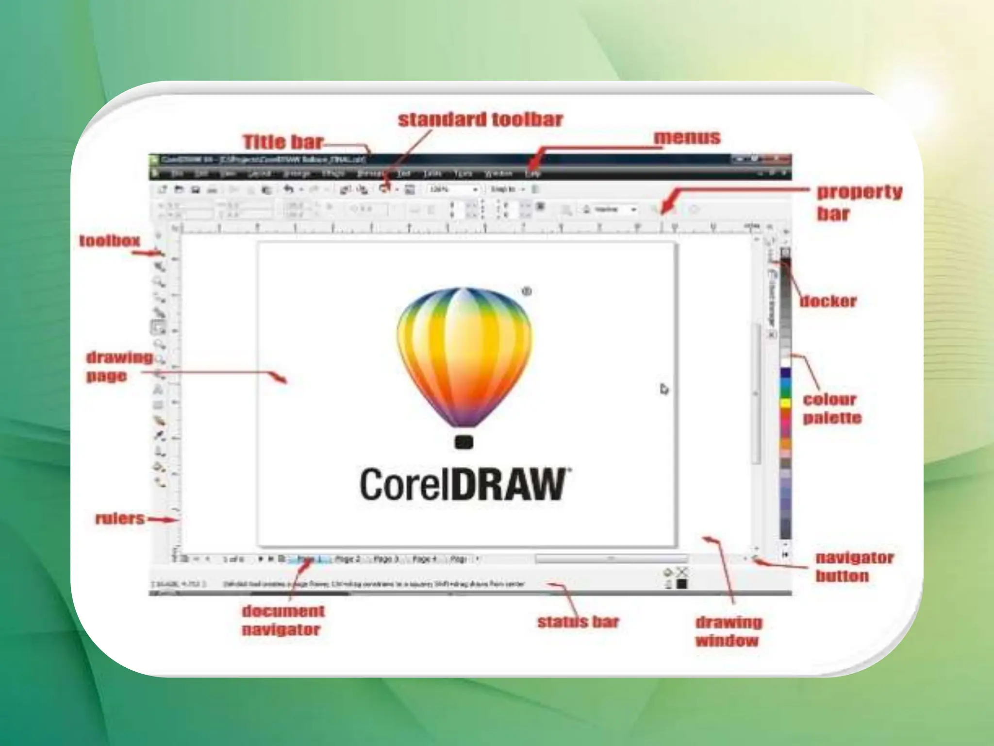 The document provides an overview of CorelDRAW, a powerful graphics program designed for working designers. It covers the application window, opening procedures, and details about various tools available for creating and editing graphics. The summary also includes descriptions of key tools such as the pick tool, shape tool, and text tool among others.