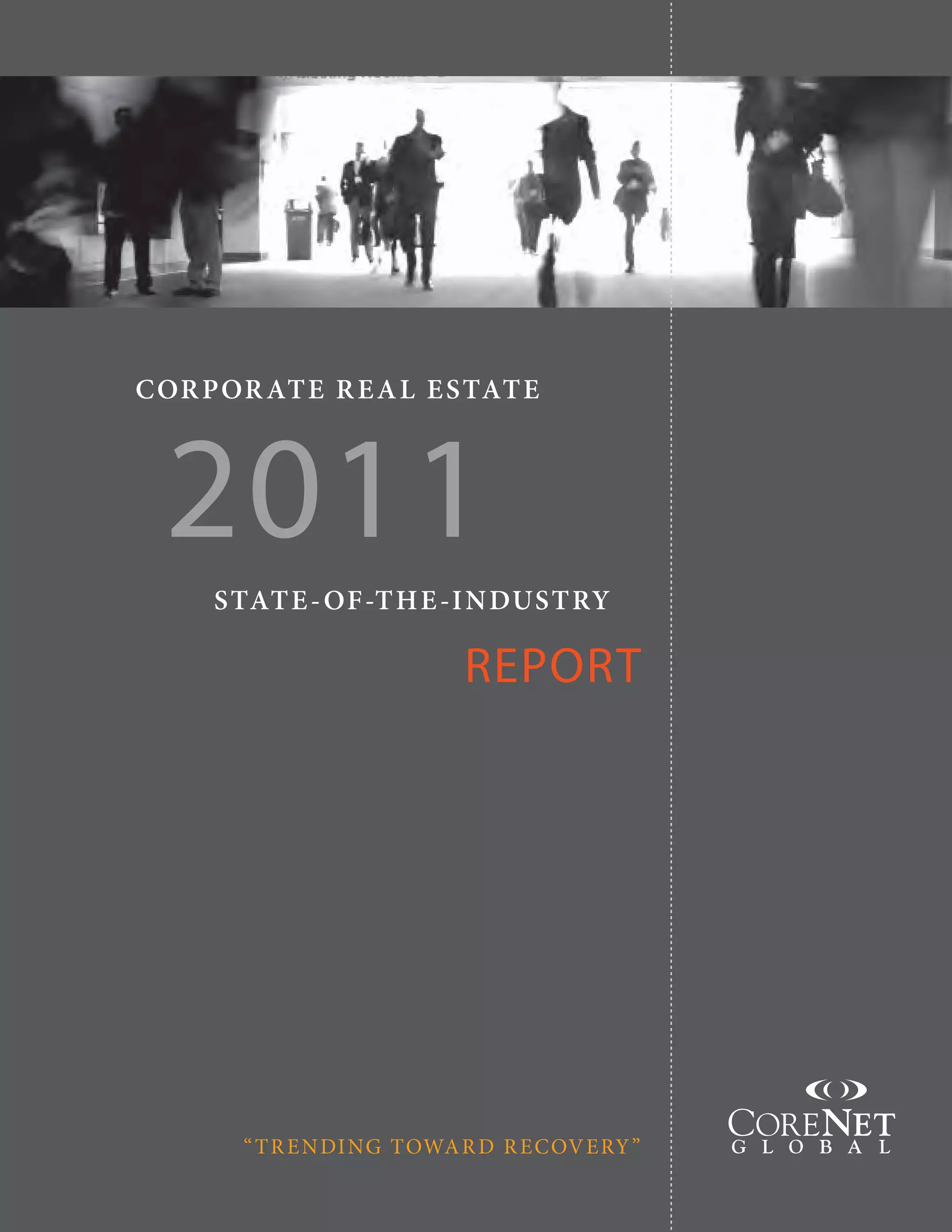 The 2011 CoreNet Global State-of-the-Industry Report discusses the recovery of corporate real estate (CRE) amid a strengthening global economy, noting varying rates of recovery across regions. Key trends include the rising importance of technology in the workplace, the need for upskilling in CRE roles, and the emergence of new markets such as CIVETS. Overall, firms are expected to invest more as confidence grows, yet challenges related to costs and compliance, particularly with new accounting standards, persist.