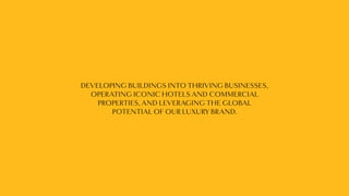 Corinthia International Hotel Investments PLC (IHI) is a luxury hospitality and real estate group that owns and operates award-winning hotels, resorts, and residences globally, with a focus on quality and brand growth. Founded in 1962 by the Pisani family, the company is dedicated to developing iconic properties and pursuing real estate opportunities while managing a diverse portfolio of hotels in major cities. IHI leverages its in-house competencies and comprehensive expertise in planning, design, and hotel management to enhance its brand's presence worldwide.