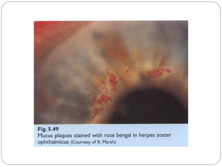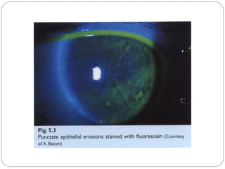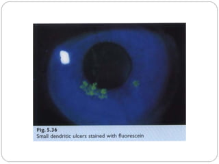 3) Common corneal diseases include infections like bacterial, fungal, and viral keratitis. Bacterial keratitis is usually caused by staphyloc