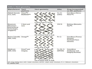 This document provides information on coronary stents. It begins with an introduction to coronary artery disease and percutaneous angioplasty. It then discusses the history and development of stents, including bare metal stents which reduced restenosis compared to angioplasty alone but still had issues. Drug-eluting stents were developed using drugs like sirolimus and paclitaxel to further reduce restenosis. The document covers first-generation drug-eluting stents and limitations, as well as second-generation stents with improved polymers and drugs that showed better outcomes than first-generation stents in clinical trials. Specific second-generation stent platforms are discussed.