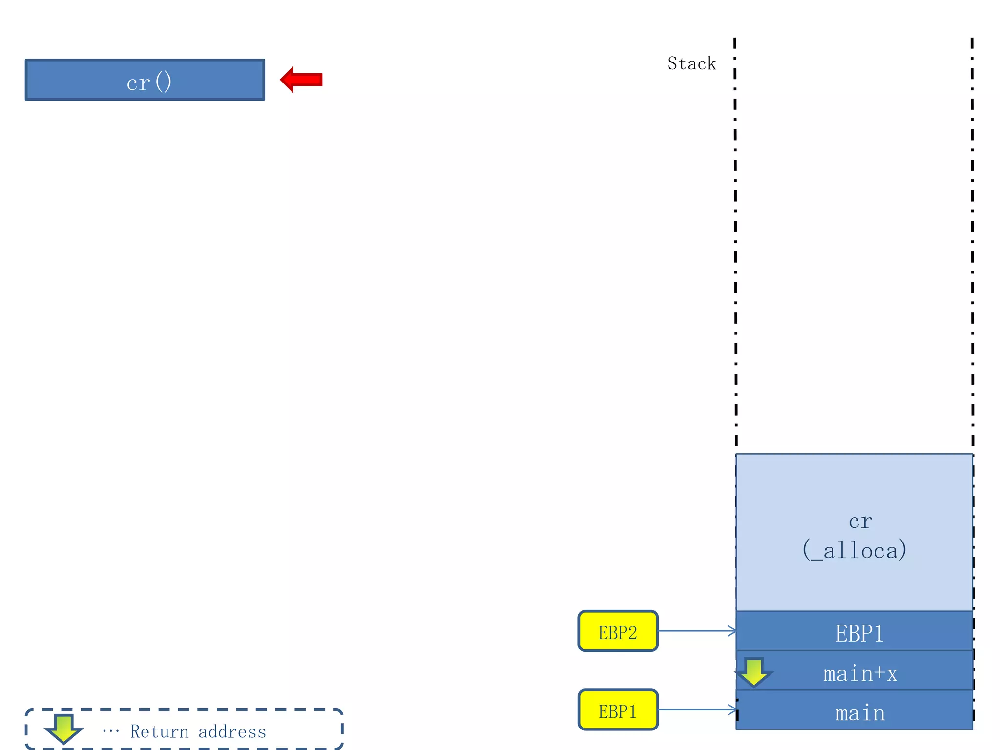 The document discusses the use of functions related to stack management such as 'setjmp' and 'longjmp' along with their interactions in programming contexts. It examines stack frames, return addresses, and the implications of not using the 'exec' wrapper for certain operations. The content highlights the complexity of stack behavior and variable accessibility during function calls and returns.