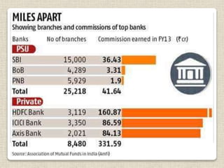 This presentation compares private sector banks and public sector banks in India. Private sector banks have grown faster since liberalization using newer technology, innovations, and tools. They offer higher salaries and more growth opportunities but less job security. Public sector banks provide more job security from the start with promotions based on seniority, but offer fewer growth opportunities and lower salaries. They provide loans at lower interest rates than private banks. The presentation includes comparative data on net sales and profits of major private and public banks.