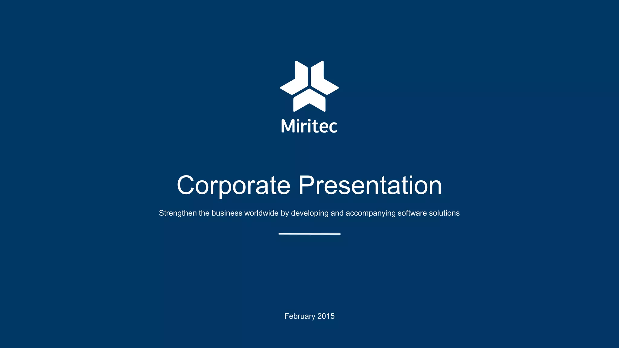 This corporate presentation by Miritec provides key figures about the company, including its history since 2008, expertise developing over 200 projects, locations in Ukraine and representative offices in the US and Germany, and over 120 qualified professionals. Charts show Miritec has customers in over 15 countries, with 25% of revenue from Ukraine, 14.4% from the US, 25% from Europe, and 34.7% from other regions. The presentation describes Miritec's services such as consulting, software engineering, outsourcing, and industry expertise in sectors like banking, healthcare, retail, and transportation.