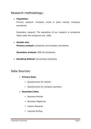This document provides an overview of corporate governance, including definitions, key principles, and landmarks in the development of corporate governance standards globally and in India. It defines corporate governance as the systems and processes by which companies are directed and controlled to ensure they operate in the best interests of stakeholders. Some key developments include codes established by the Cadbury Committee in the UK in 1992 and by the Confederation of Indian Industry in 1998, as well as guidelines from the OECD and regulatory changes in India.