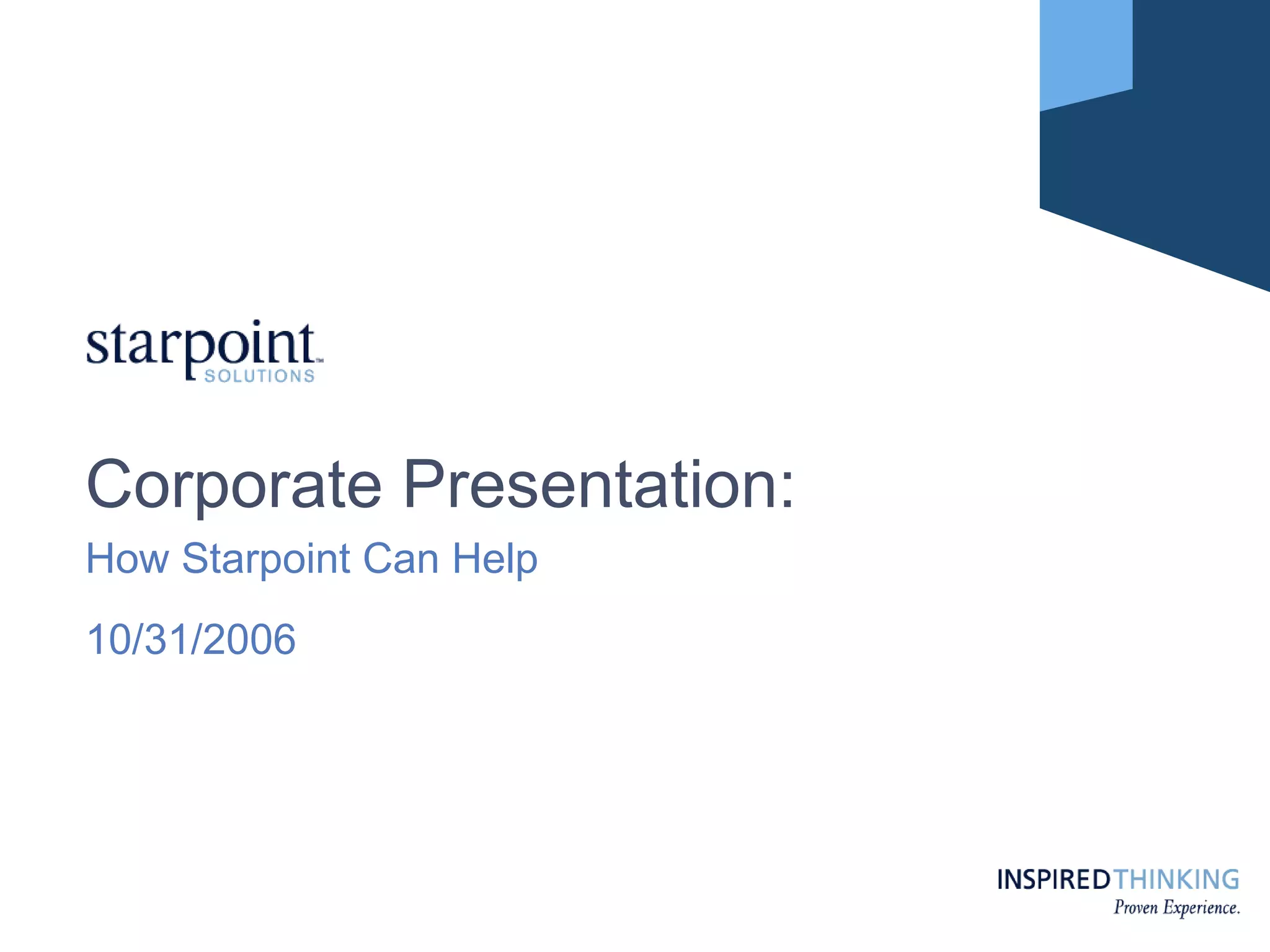 Starpoint Solutions provides consulting, custom application development, and integration solutions to help clients achieve their business goals. It has been in business since 1982, is privately held with offices nationwide, and has a successful track record of implementing solutions for Fortune 500 companies. Starpoint uses a rigorous process to qualify technology resources and provides flexible delivery models including outsourced teams and staff augmentation.